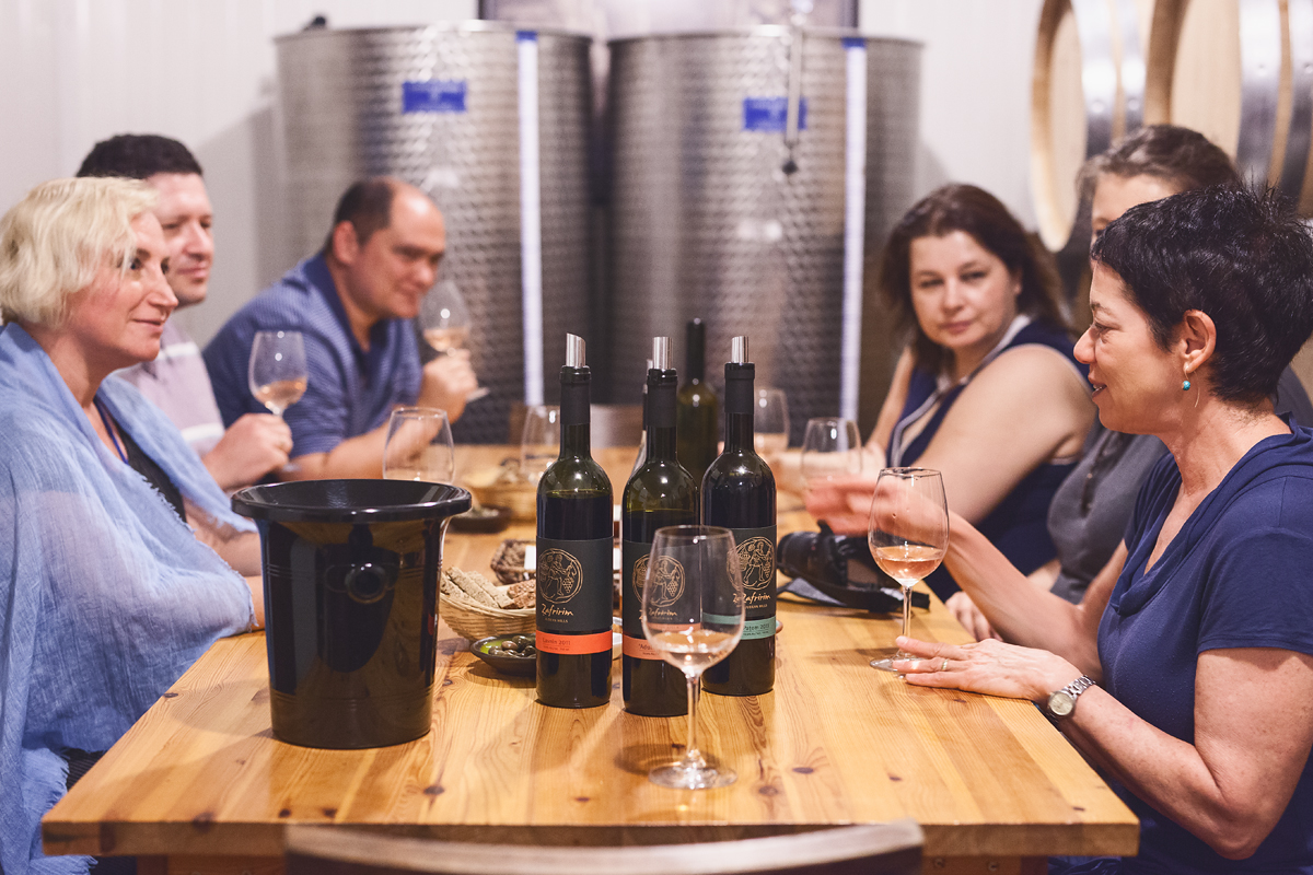 11.55. До новых встреч, Бейт Джамаль! Мы направляемся в парк Адуллам. Чего там только нет: и тайные пещеры времен еврейского восстания, и колокольные пещеры-каменоломни, и уникальное еврейское поселение с древними миквами и винными прессами. Во времена Второго Храма здесь располагалось множество еврейских городков и поселений. Наш путь лежит в мошав Цафририм и одноименную винодельню. Ее владельцы – приятная семейная пара Лори и Шайке Лендер. Археологи по образованию, в 2004-м году они открыли винодельню, где сегодня производят очень вкусное и качественное вино. Его-то мы и хотим попробовать!